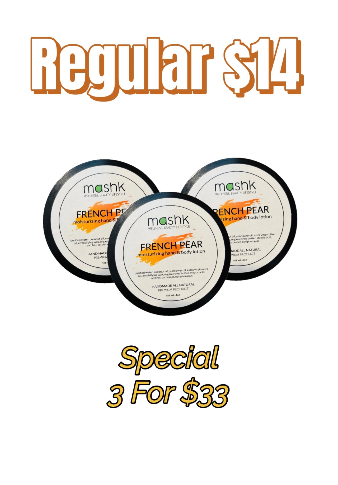 Our exotic flavored French Pear lotion is designed to hydrate and rejuvenate your skin with safe and soothing ingredients. A luxurious toxin-free lotion that will penetrate your skin easily with sheer but full coverage, It will leave your skin soft and moisturized all day long.